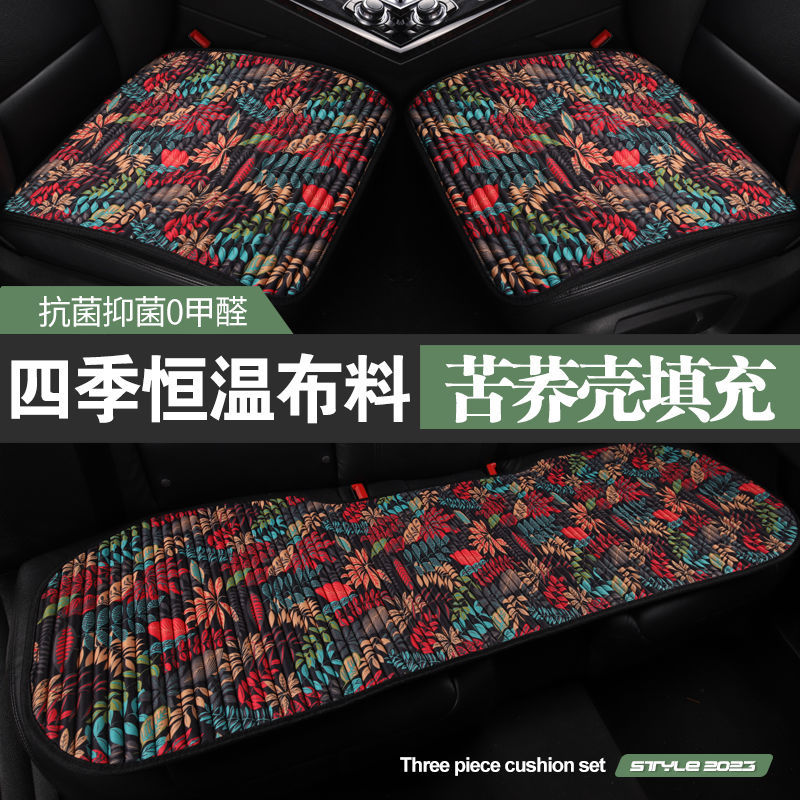 Bantal kursi mobil empat musim universal tiga potong bantal kursi cangkang gandum linen katun bantal tunggal tanpa sandaran bantal kursi belakang linen