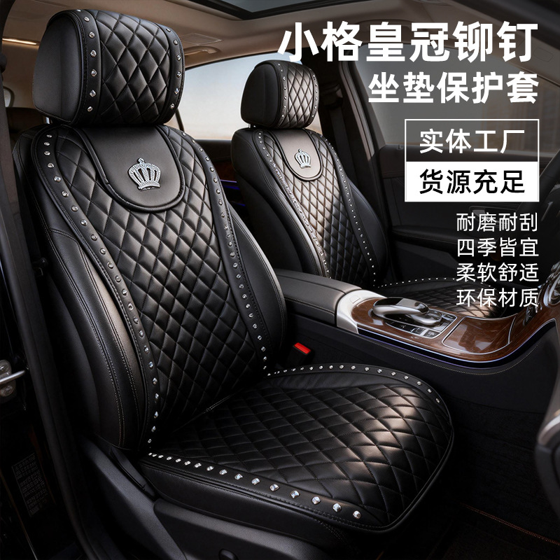 Sarung jok mobil motif kotak-kotak kecil dengan rivet, cocok untuk semua musim, nuansa mewah ringan, kualitas tinggi, tepi berlapis kulit, penutup jok model pinggang kecil.