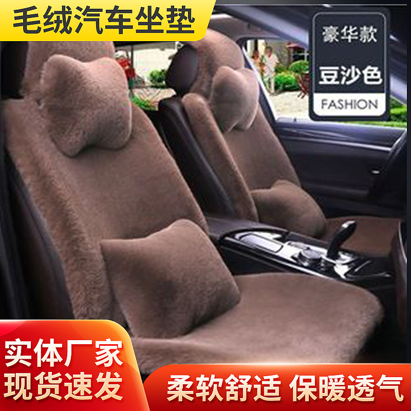 Bantal beludru kelinci mobil musim gugur dan musim dingin, sarung kursi mobil semua inklusif universal dengan bantal beludru halus