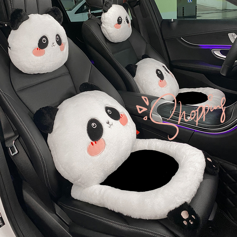 Bantal kursi mobil musim dingin mewah empat musim pemanas universal bantal kursi mobil musim dingin bantal mobil panda asli selebriti Internet kursi mobil