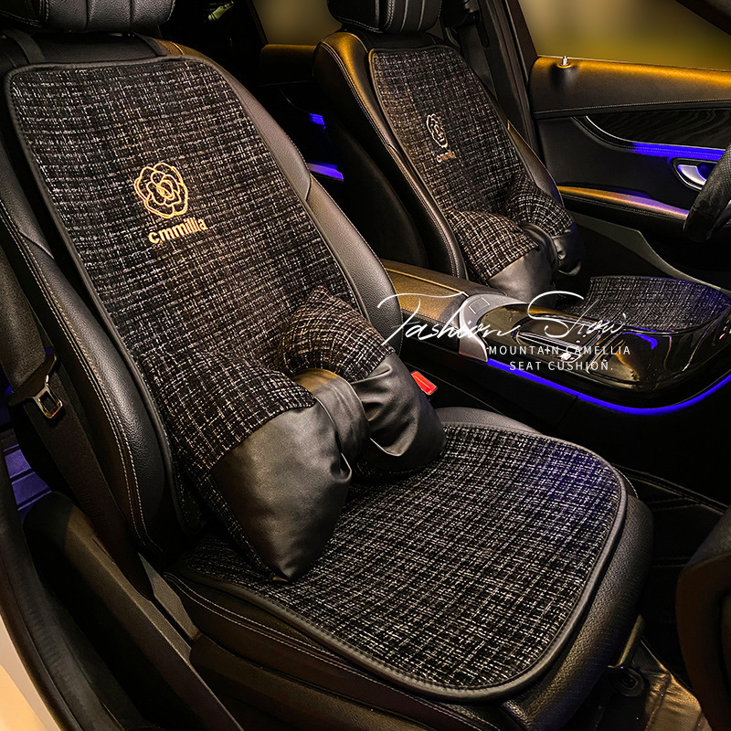 Bantal mobil universal, empat musim musim musim musim panas bordir kursi Camellia, bantal kursi ventilasi linen bantal dingin, tiga potong set untuk wanita