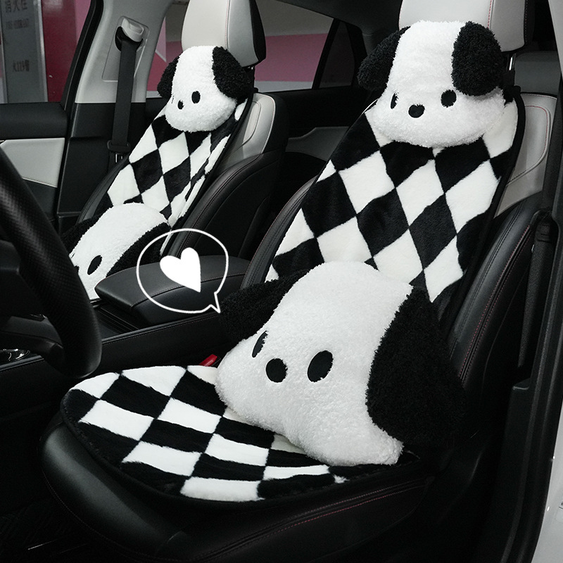 Bantal kursi mobil bulu kelinci imitasi papan catur grid mobil musim dingin bantal Tempat duduk hangat Internet selebriti mobil bantal kursi Universal empat musim