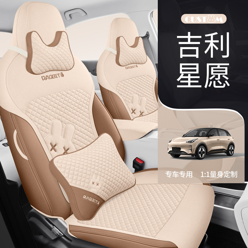 Sarung Kursi Mobil Khusus untuk Geely Xingyuan Alas Mobil Bernapas Katun Linen Empat Musim yang Dikelilingi Penuh Lucu Kartun