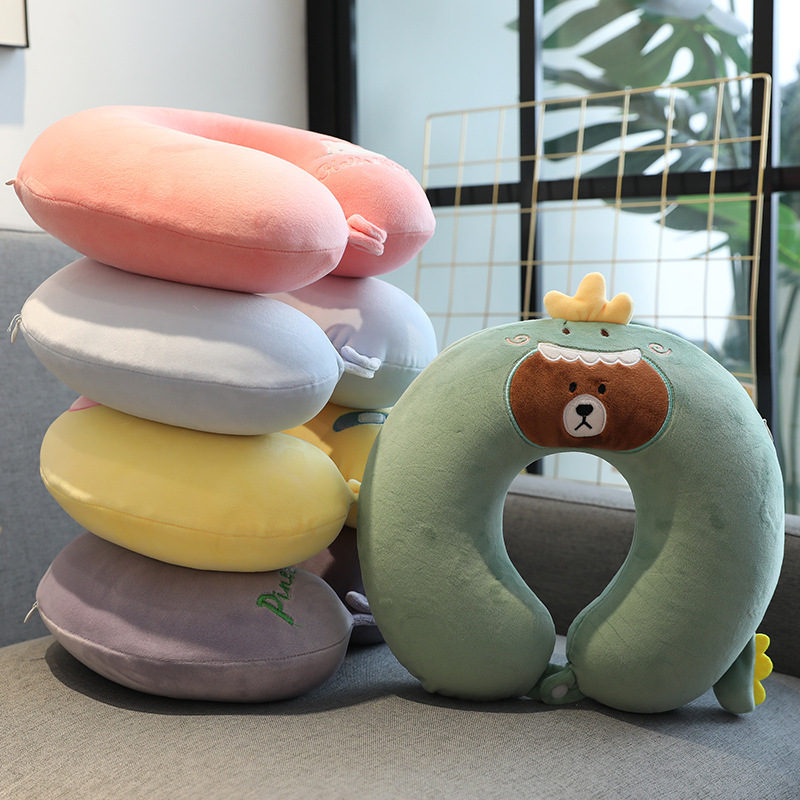 Bantal leher U busa memori kartun, bantal leher lucu, penopang tengkuk mobil, perjalanan portabel multifungsi musim panas