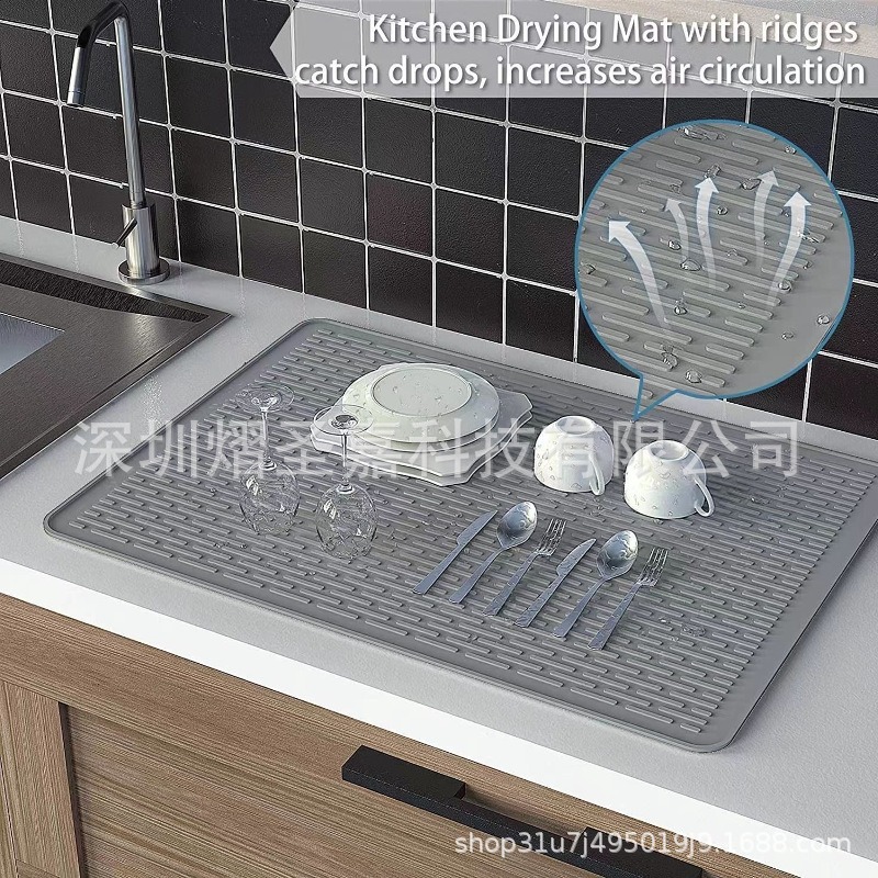 Tikar pengering silikon, tikar filter air ukuran besar dan sedang kecil meja makan meja bar konter wastafel isolasi panas drainase multifungsi alas peralatan makan