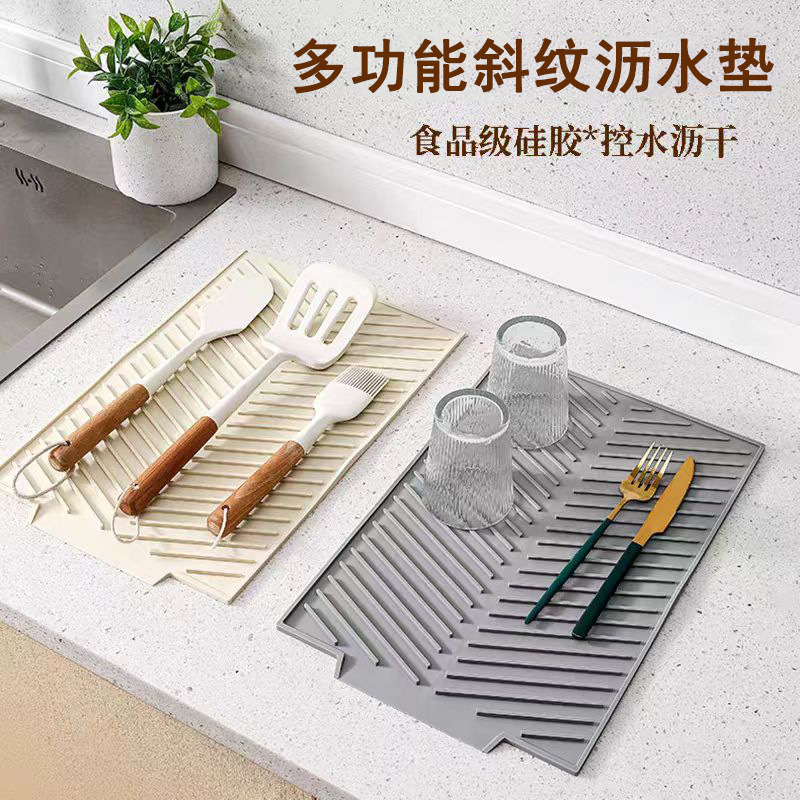 Diskon besar Amazon silikon slope open drain tray dapur multi-fungsi pengeringan menebal pengeringan pad isolasi panas
