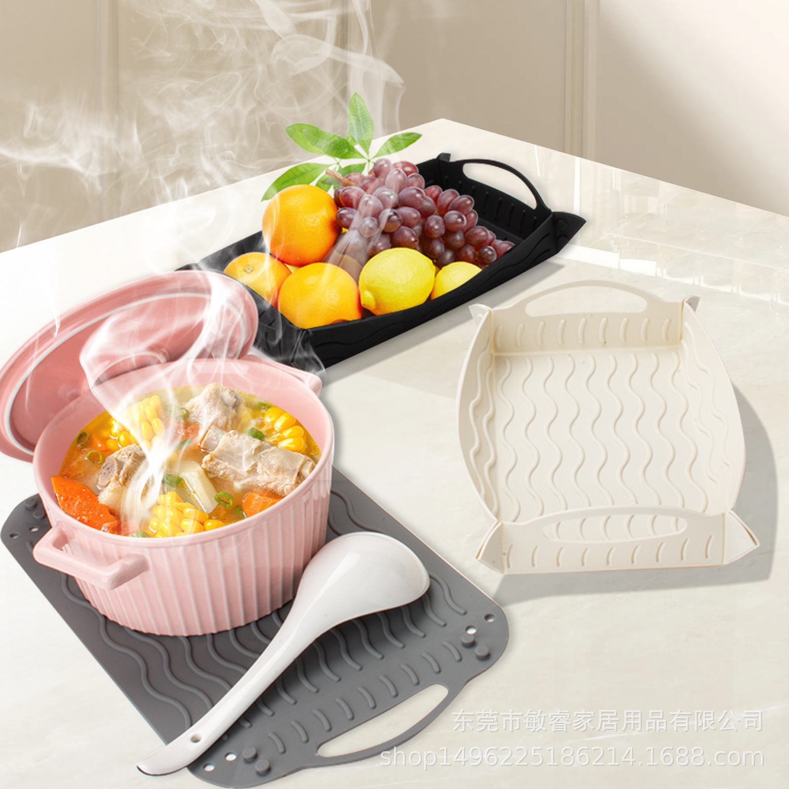 Bantalan silikon penyimpanan dapat dilipat, bantalan isolasi panas batang persegi panjang, bantalan wastafel drainase bergelombang gelombang multifungsi