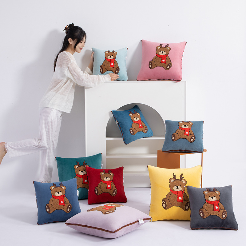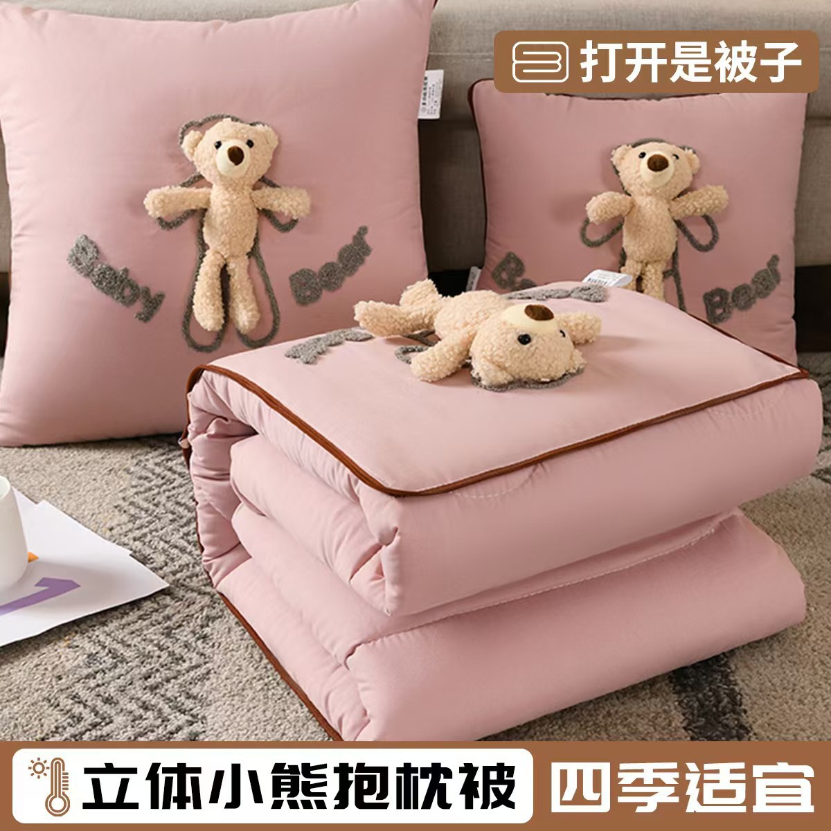 Online populer kartun tiga dimensi beruang bordir pabrik grosir multi-fungsi bantal penggunaan ganda selimut kecil