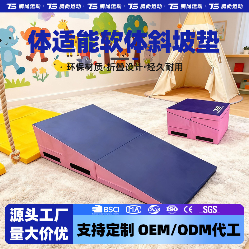 Tikar olahraga segitiga lembut anak-anak, peralatan pendidikan dini multi-fungsi tebal tikar miring lipat