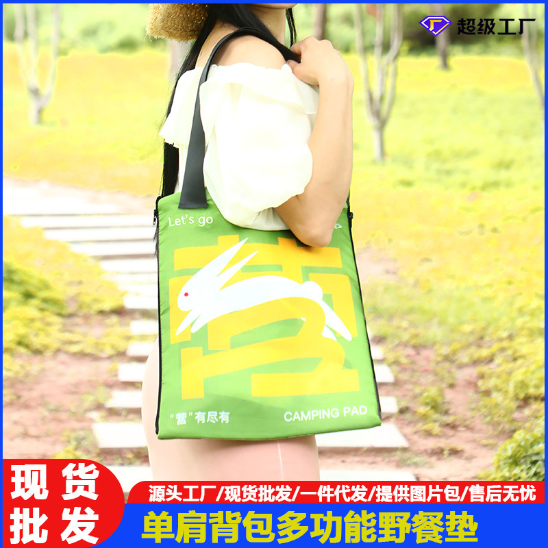 Tikar piknik ransel luar ruangan, tikar Satu bahu portabel tahan lembab, tikar rumput tamasya musim semi portabel multifungsi