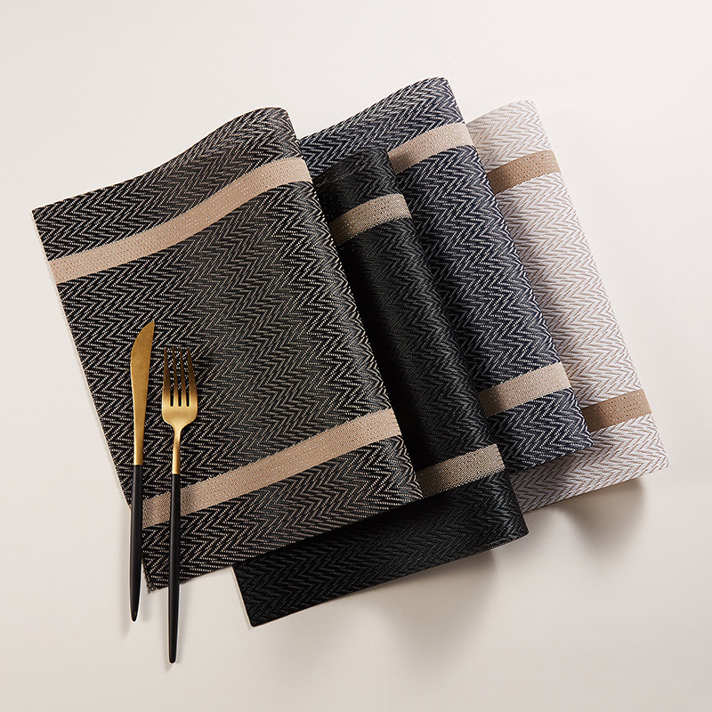 Alas meja anti air Nordic, tatakan PVC anti minyak tahan air ringan Restoran anti selip isolasi bergaris jacquard mangkuk