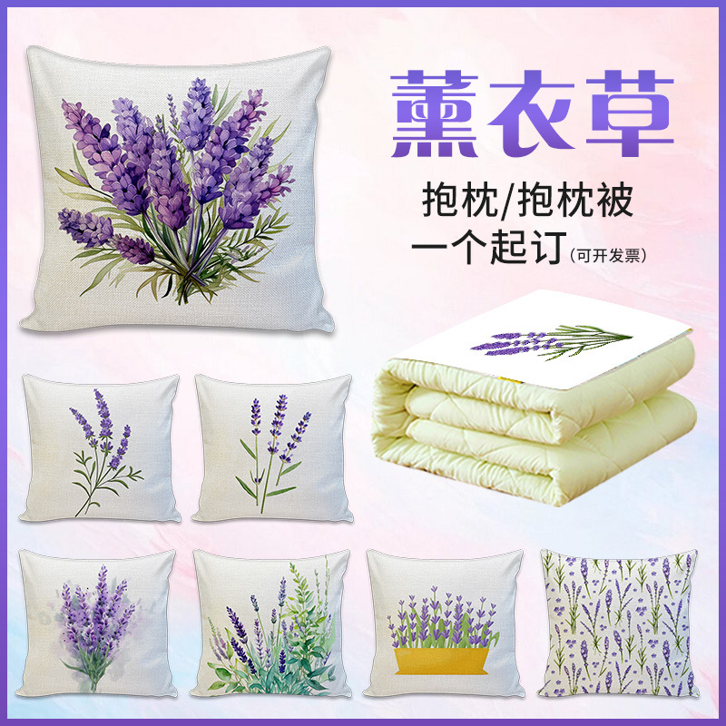 Bantal Sofa Ruang Tamu Bantal Sandaran Kursi Ungu Romantis Bantal Sandaran Kursi Alas Sandaran Segar Dicat Tangan Lavender Selimut Dua Penggunaan
