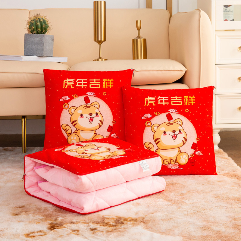 Selimut bantal Tahun harimau dua kegunaan dua dalam satu pintu terbuka selimut bantal merah Tahun Baru hadiah bantal meriah grosir