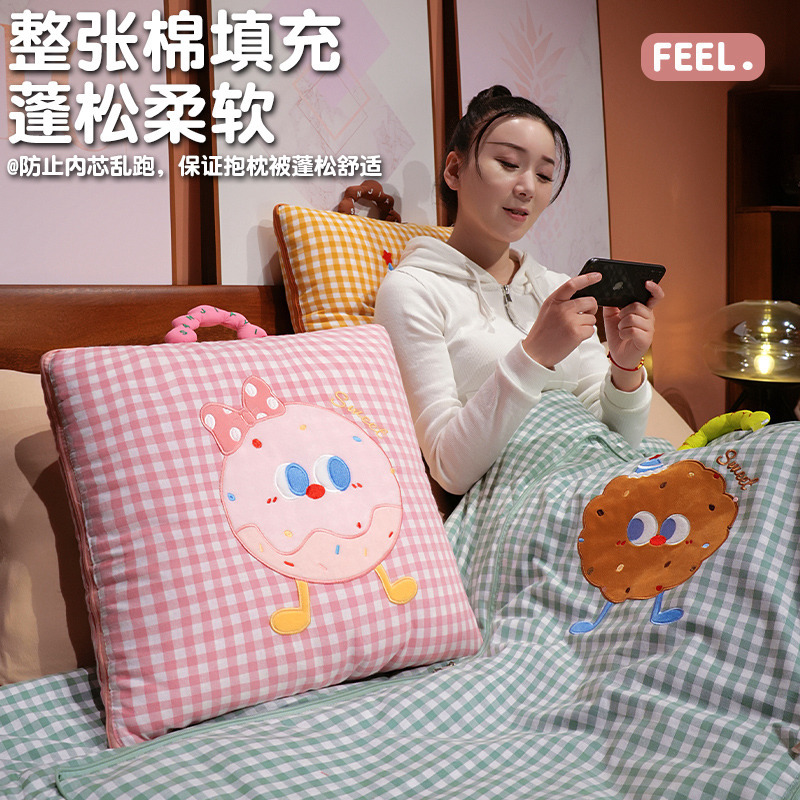 Bantal Peluk Biskuit Kartun Lucu Dua Penggunaan Bantal Sofa AC Bantal Sofa Tidur Siang Kantor Selimut Lipat Mobil