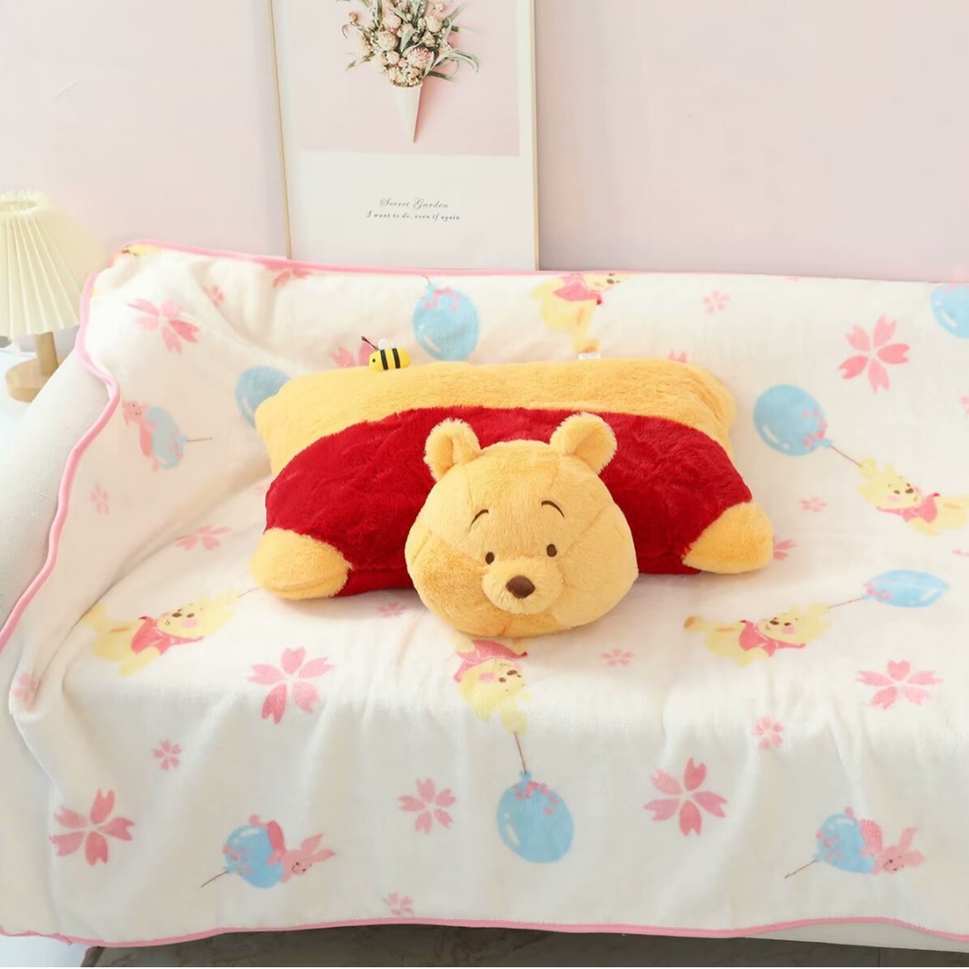 Pooh kartun lucu bantal mewah bantal AC selimut selimut penggunaan ganda selimut kantor makan siang istirahat selimut tidur siang