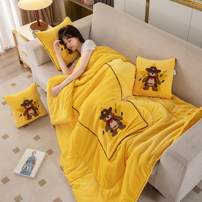 Doudou bantal beludru selimut penggunaan ganda mobil kantor selimut AC musim dingin menebal selimut istirahat makan siang bantal mobil