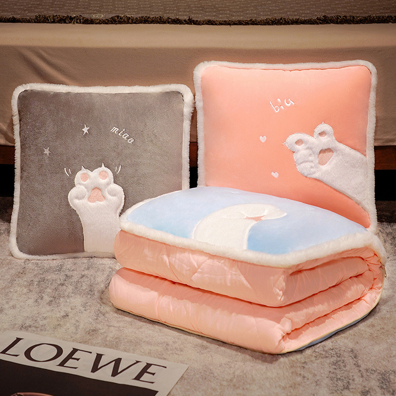 Lucu cakar kucing penggunaan ganda dua-in-one bantal selimut kantor tidur siang lipat penyimpanan AC selimut bantal untuk penggunaan mobil