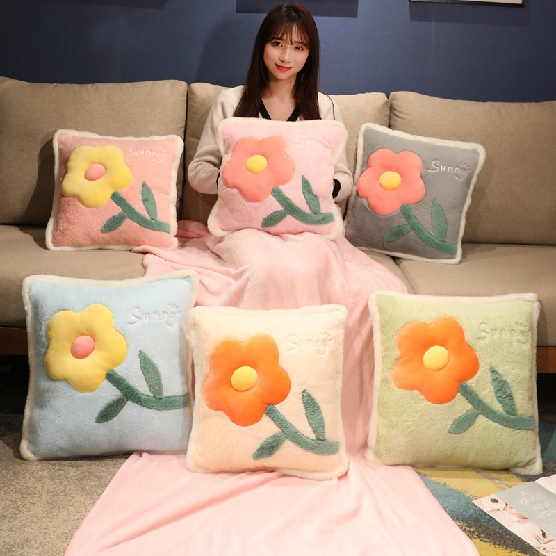 Selimut bantal bunga, selimut AC kantor, penggunaan ganda, bantal kecil, selimut bantal mewah mobil