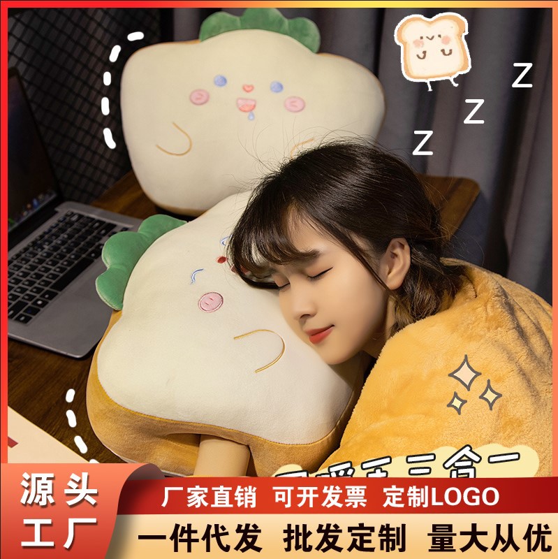 Bantal penghangat tangan roti panggang lucu baru bantal tidur siang penggunaan ganda selimut tiga dalam satu