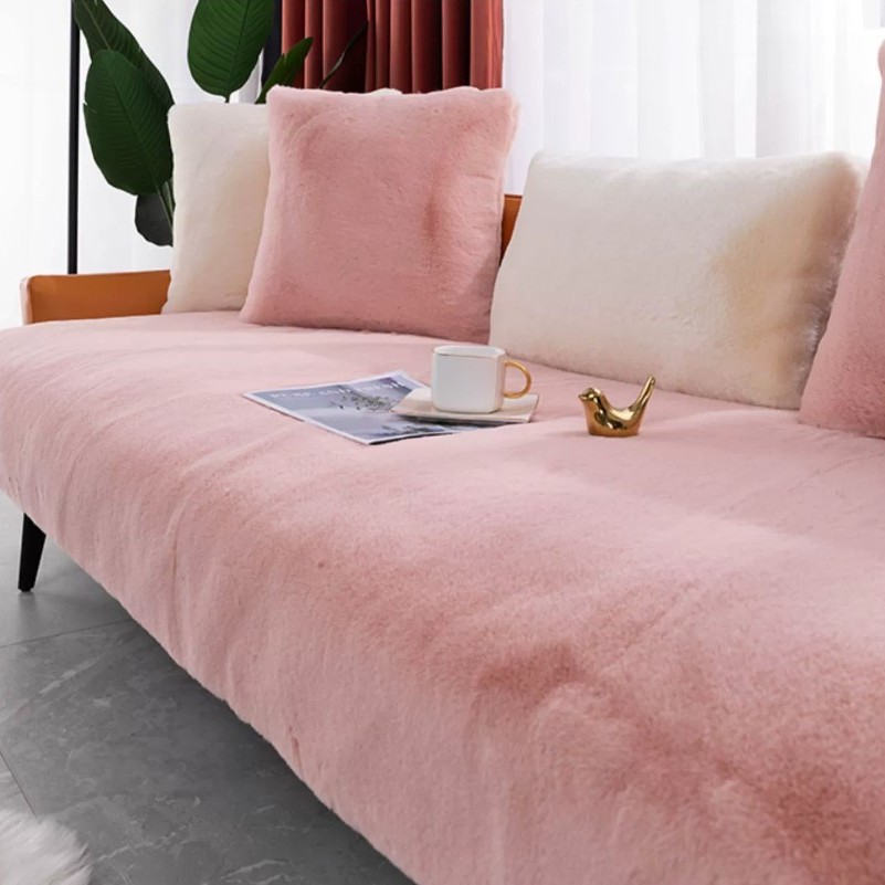 Mink bantal sofa hangat, penutup sofa kulit lembut anti selip, tebal, musim dingin, bulu handuk