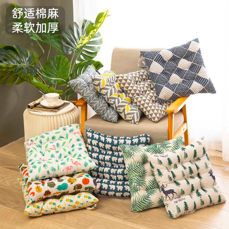 Bantal katun dan linen, bantal kursi gaya ins bernapas sederhana tebal empat musim siswa kantor tatami tart