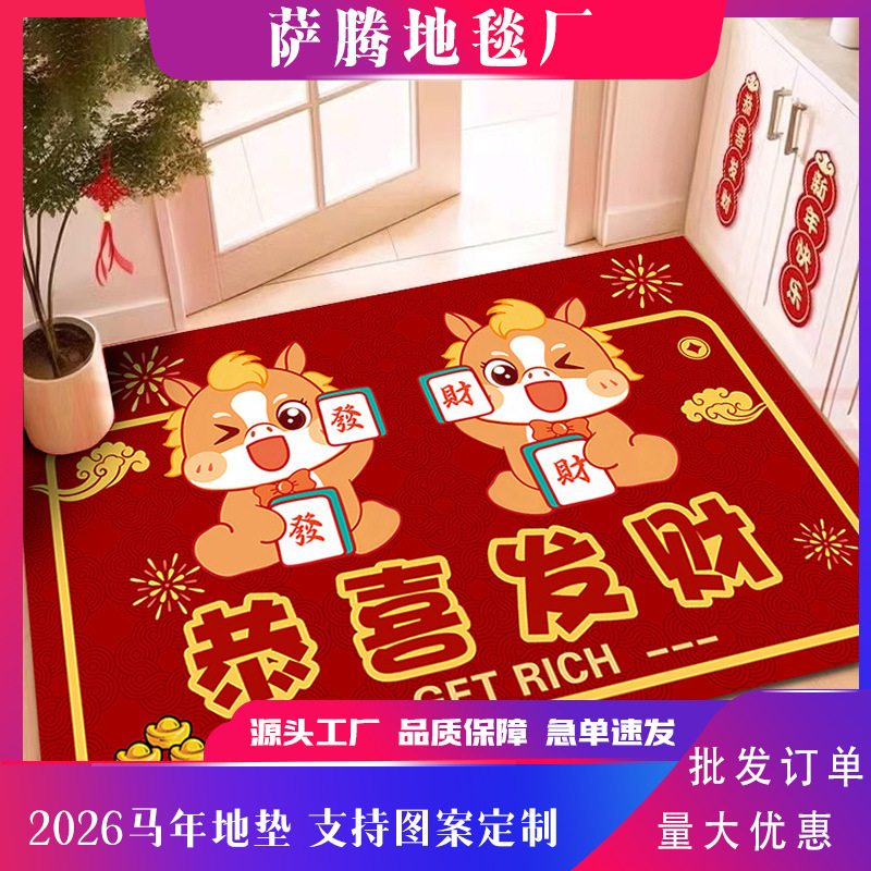 2026马年地垫红色入户门地垫家用吸水硅藻泥地垫耐脏易清洗防滑垫