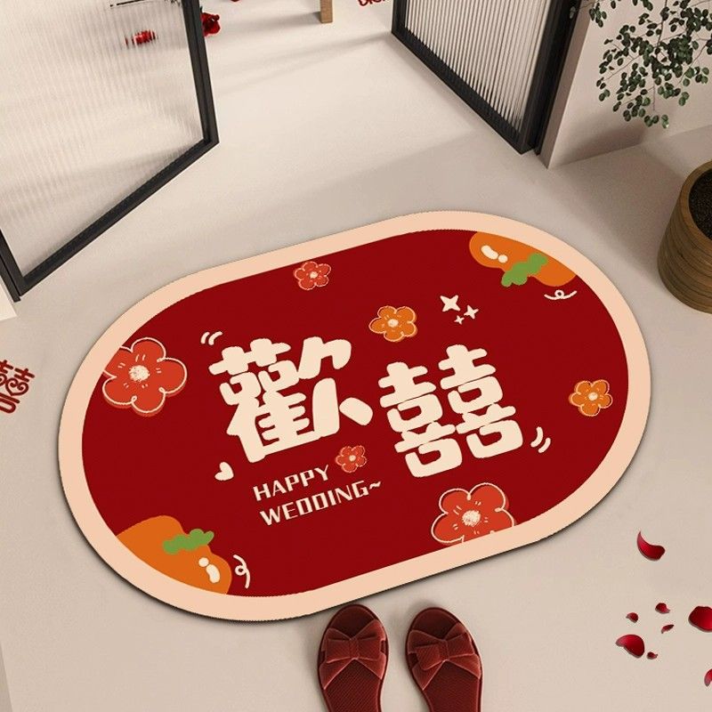 Tikar lantai diatom pernikahan, merah dekorasi kamar mandi anti selip tikar rumah kamar mandi menyerap cepat kering tikar lantai