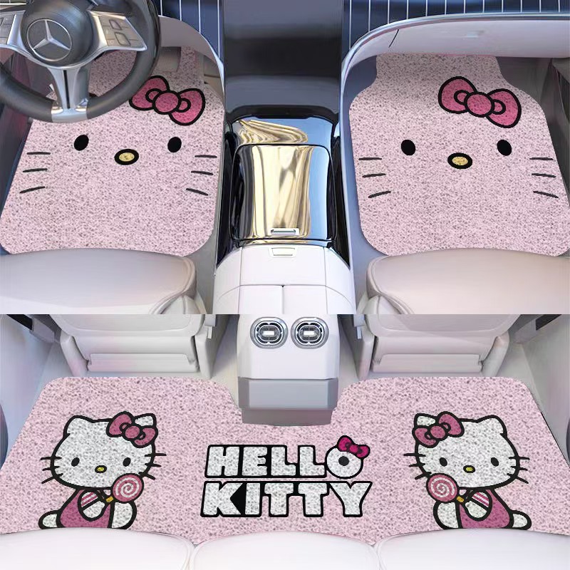 汽车脚垫丝圈通用型卡通哈喽Kitty连体蹭土耐脏防水防滑网红车垫
