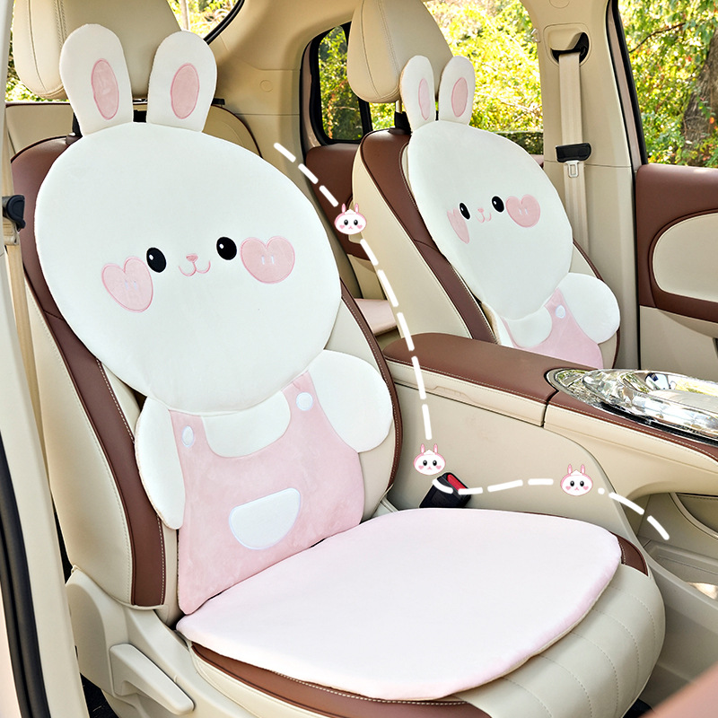 Bantal mobil universal empat musim, bantal kursi mobil universal, kartun es sutra, antiselip, bantal kursi mobil, tiga dimensi, kelinci, lucu