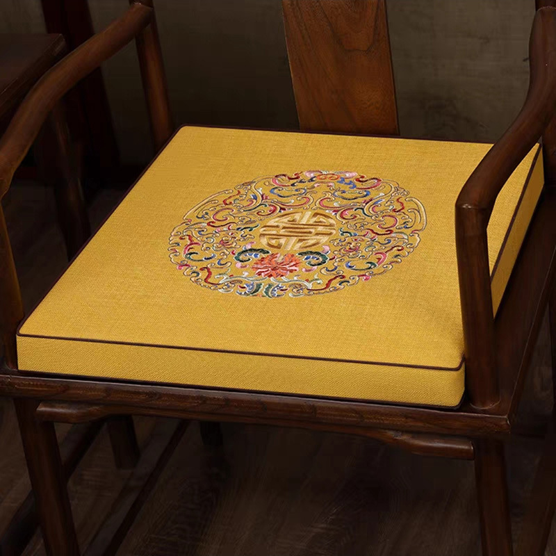Alas Duduk Katun Linen Kayu Solid Gaya Tiongkok Alas Kursi Sofa Kayu Merah Kursi Makan Anti Licin Dipertebal Alas Kursi Guru
