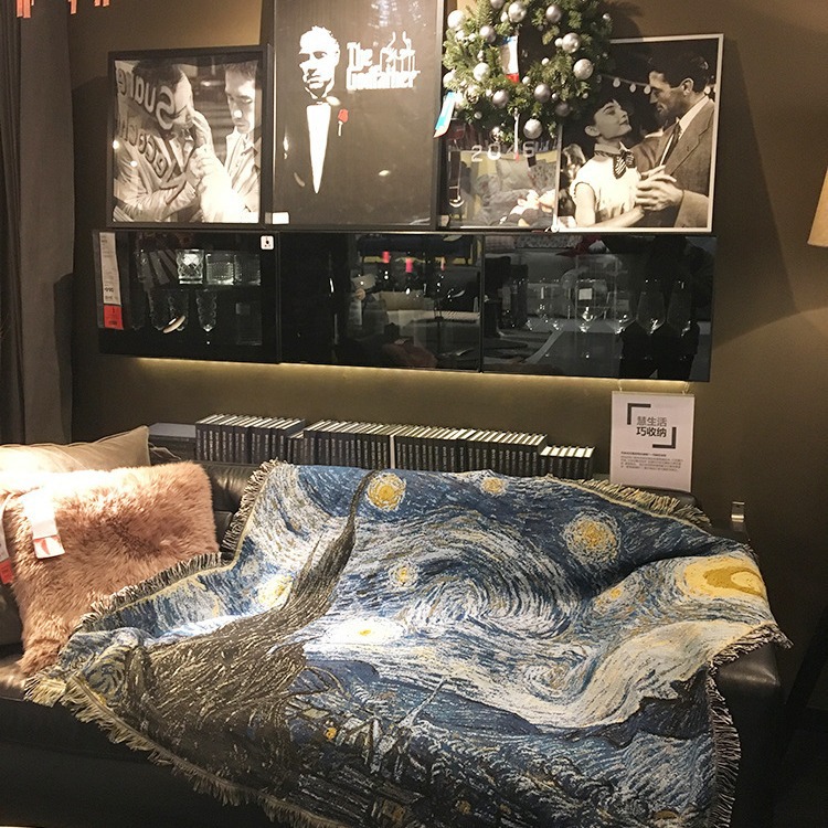 AliExpress shopee Van Gogh langit berbintang permadani dekoratif selimut sofa selimut selimut bed selimut rajutan karpet