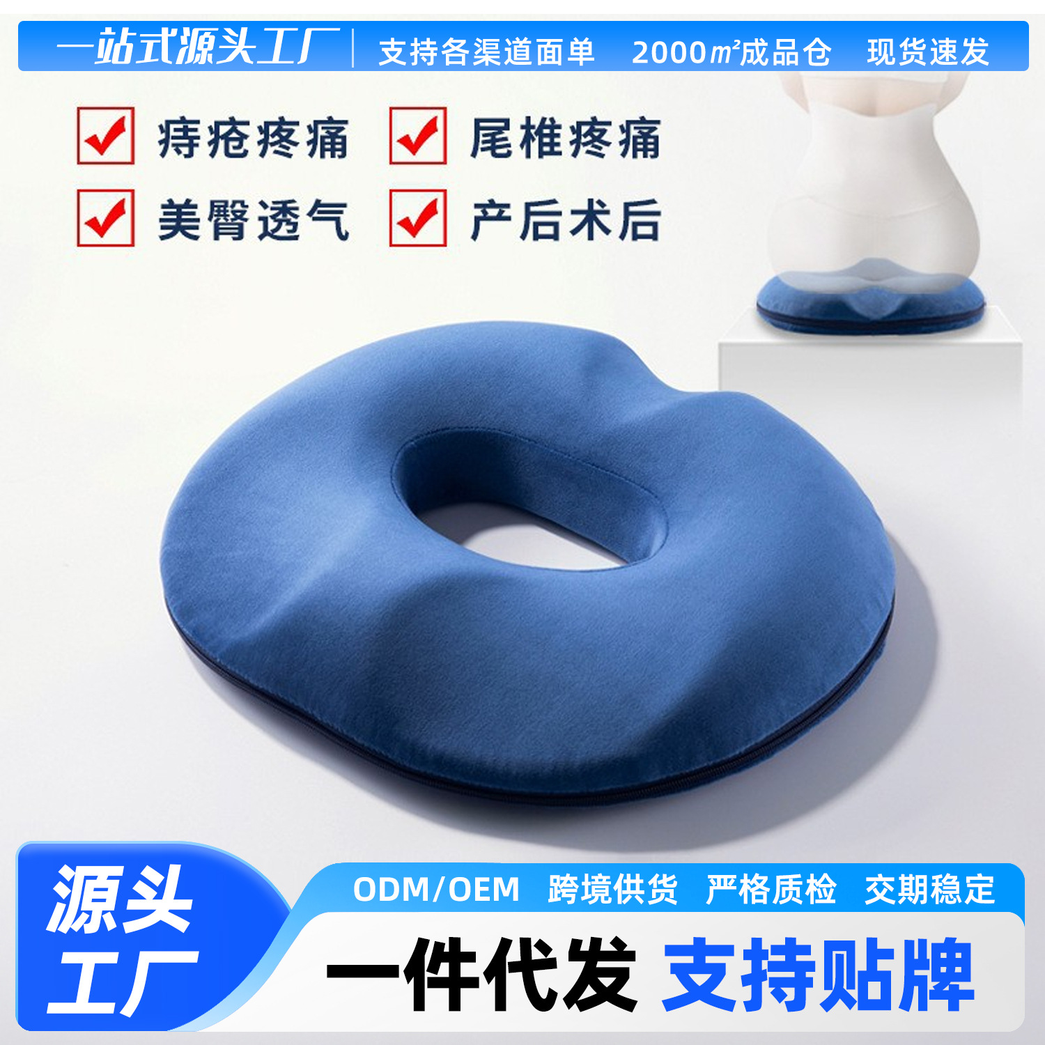 Bantal busa memori high-rebound lintas batas, bantal portabel, bantal kursi berongga bentuk O untuk kantor