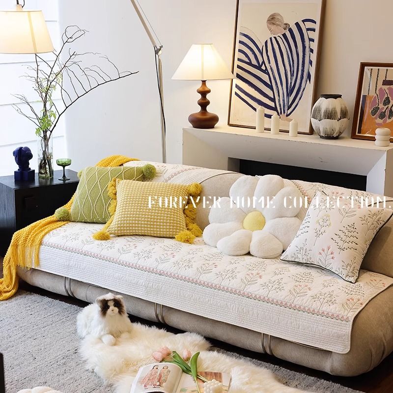 Alas Sofa Bordir Katun Murni Industri Berat Modern Empat Musim Sederhana Kain Katun Murni Seni Anti Licin Penutup Alas Duduk Ruang Tamu