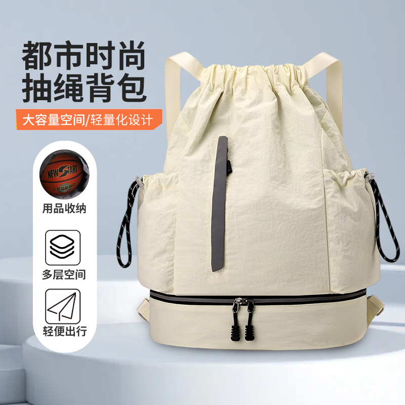 Tas Bola Basket Luar Ruangan Modis Ringan dan Ringan Desain Strip Reflektif Olahraga Kebugaran Santai Tali Serut Tas Ransel Kapasitas Besar Barang Tersedia