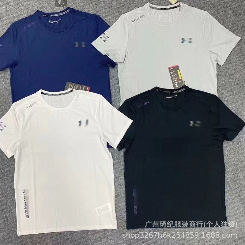Kaus lengan pendek pria, baju olahraga musim panas cepat kering pria luar ruangan bernapas kasual es sutra dingin leher bulat berlari kebugaran