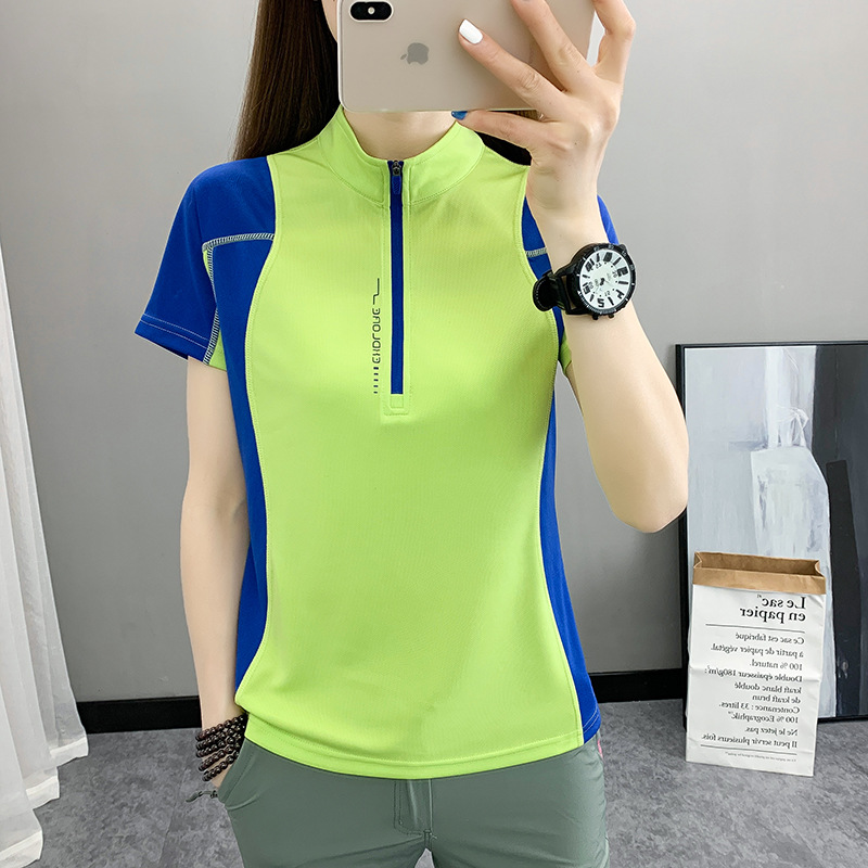 Kaus lengan pendek wanita, pakaian luar ruangan cepat kering atasan olahraga menyerap keringat bernapas ramping berlari mendaki tipis cepat kering