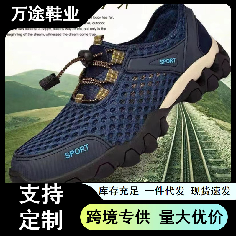 Sepatu jaring pria, Kasut rendam mendaki gunung versi Korea ringan bernafas perdagangan luar negeri 2024