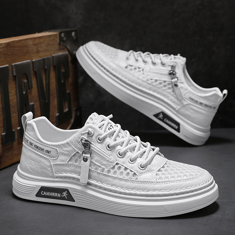 Sepatu Putih Kecil Sol Lembut Model Baru Musim Panas Sepatu Jala Sepatu Pria Gaya Korea Sepatu Gann Permukaan Kain Sepatu Pria Trendi Olahraga Luar Ruangan