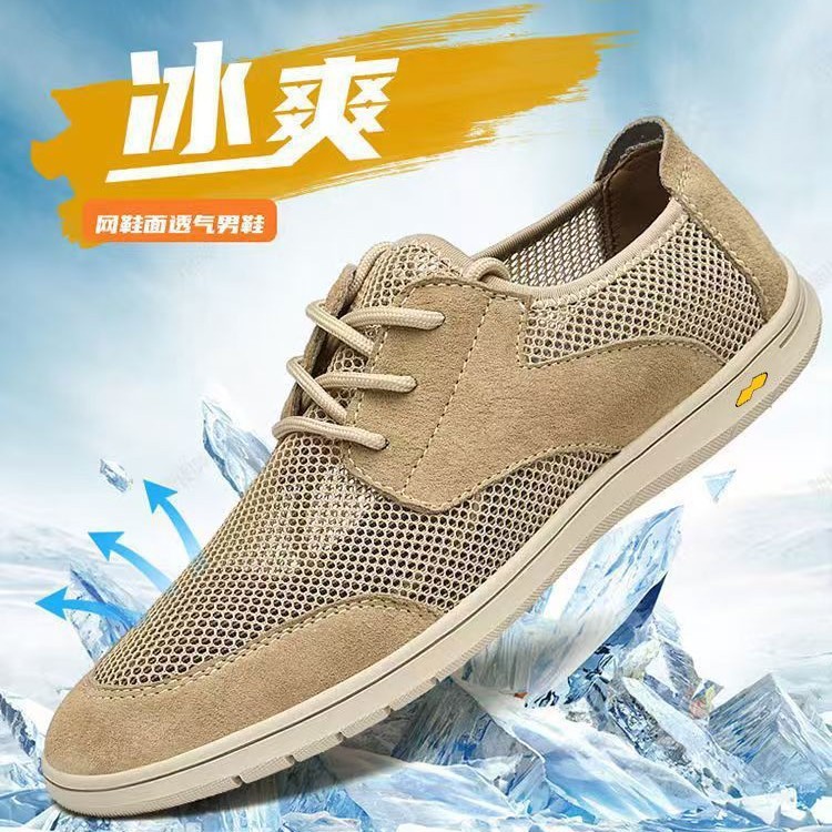 Sepatu Pria Musim Panas Model Baru Jaring Sederhana Kain Jaring Tembus Udara Sepatu Kasual Luar Ruangan Sol Lunak Permukaan Lunak Grosir Sandal Pria
