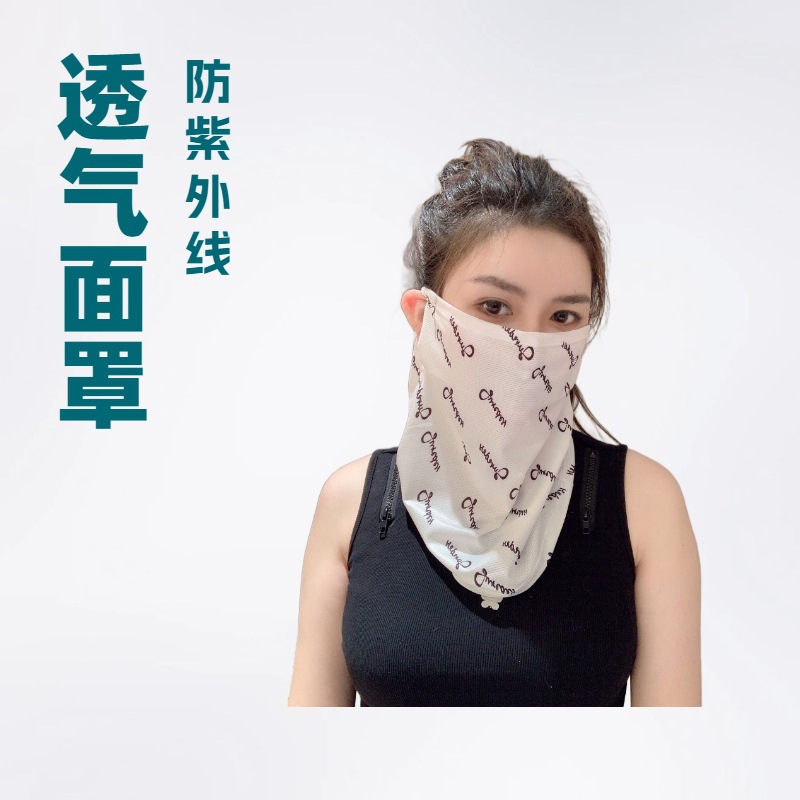 Topeng Pelindung Terik Matahari Bersepeda Luar Ruangan Topeng Gantung Telinga Berkendara Musim Panas Topeng Sutra Es Berkain Selubung Universal Pria dan Wanita