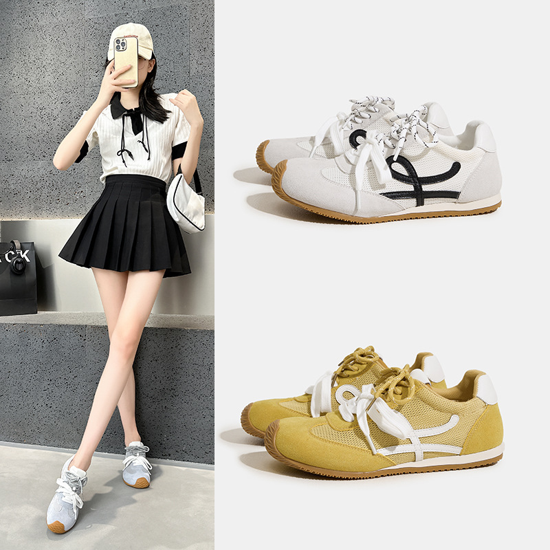 Sepatu Wanita Elegan Permukaan Jaring Tipis Model Baru Musim Panas 2025 Sepatu Olahraga Kasual Wanita Sol Lembut Mudah Dipadu Padan