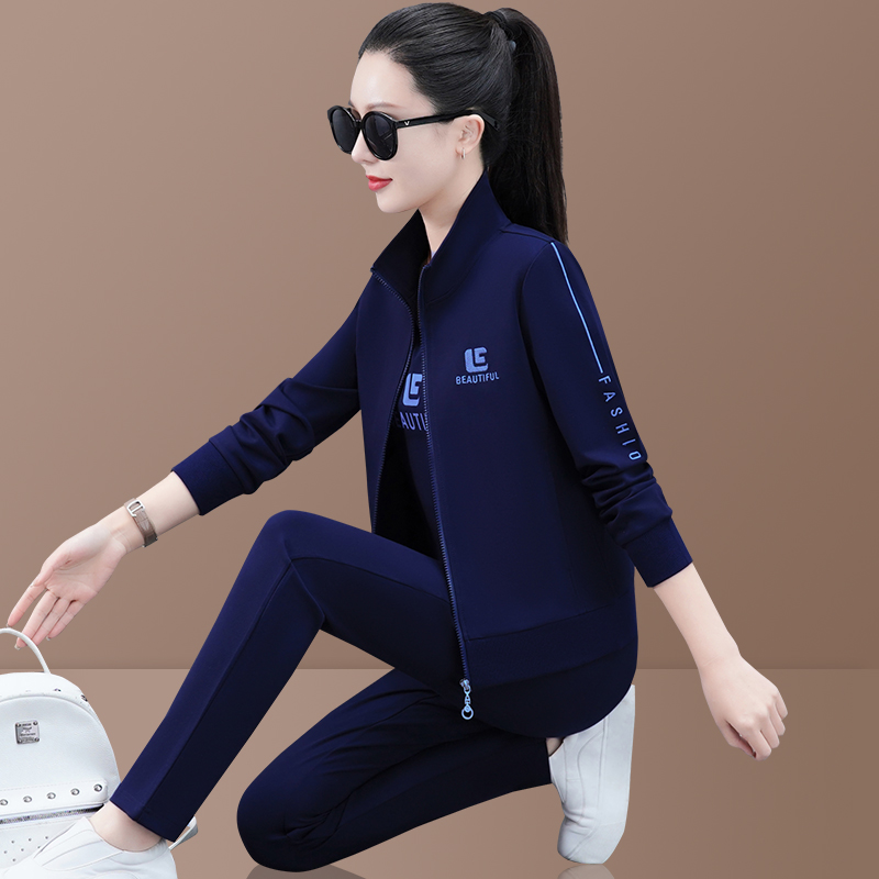 Setelan olahraga wanita mode baru musim semi dan gugur 2023 merek fashion Korea gaya Barat kerah berdiri kardigan santai luar ruangan set tiga potong
