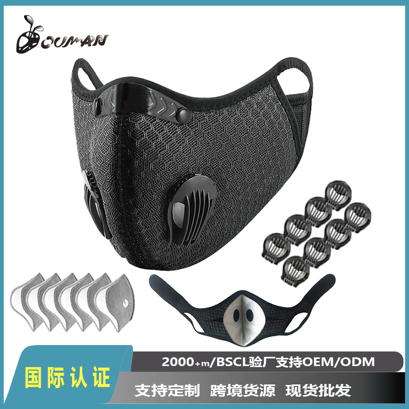Masker pelindung olahraga, bersepeda dengan katup pernapasan karbon aktif dapat diganti elemen filter 5 lapis