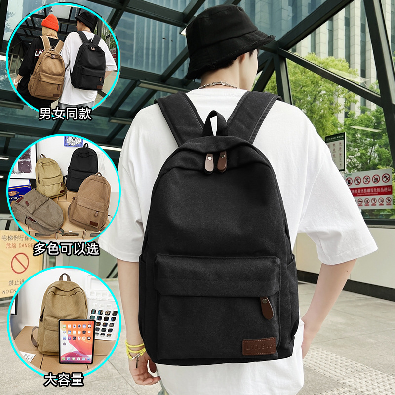 Tas punggung kanvas santai luar ruangan tas sekolah murid kuliahan kapasitas besar tas punggung perjalanan luar ruangan kain Oxford untuk pria dan wanita