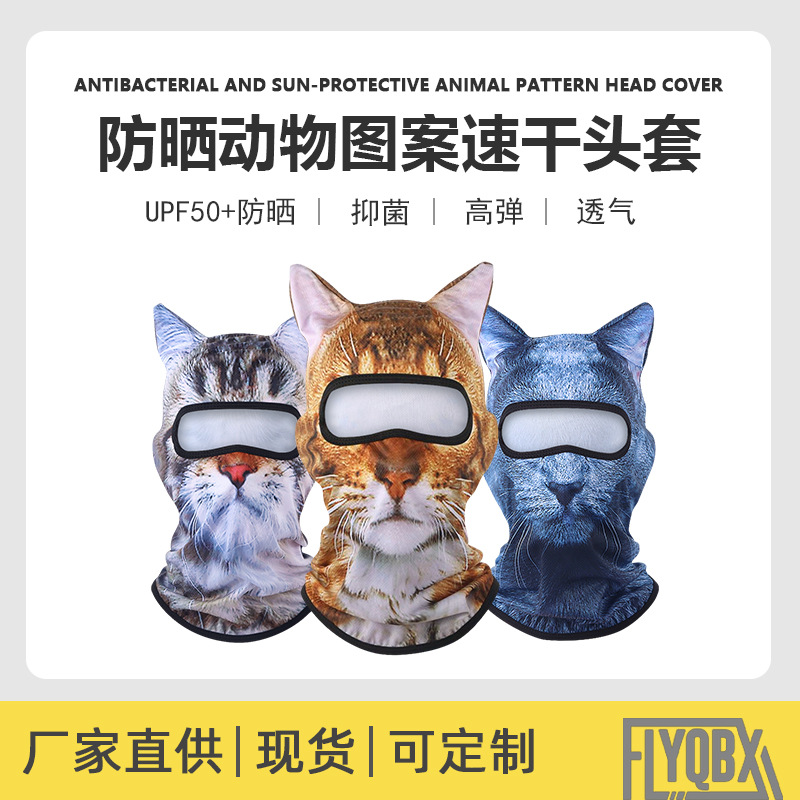 Amazon Produk Baru Berkarakter Lucu Bersepeda Luar Ruangan 3D Masker Hewan Sarung Penutup Pelindung Terik Matahari Seri Kucing Lucu Serap Keringat