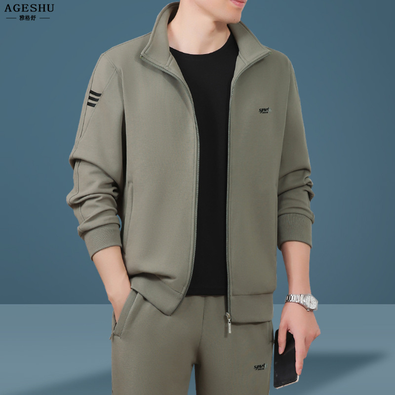Pakaian olahraga pria paruh baya dan lansia, pakaian olahraga kasual kelas atas, pakaian ayah Musim Semi dan Musim Gugur, pakaian olahraga tiga potong