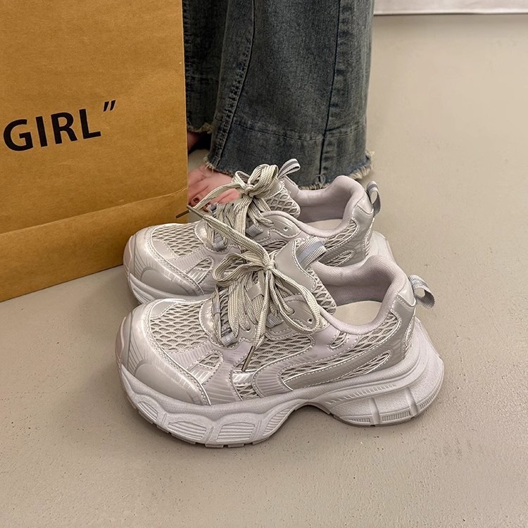 Sepatu Ayah Paris Mudah Dipadu Padan Stasiun Eropa Sepatu Kasual Sol Tebal Wanita 2025 Sepatu Olahraga Luar Ruangan Bernapas Permukaan Jaring Musim Semi dan Musim Panas