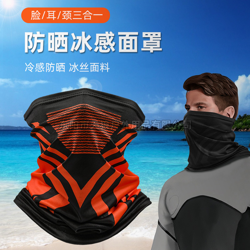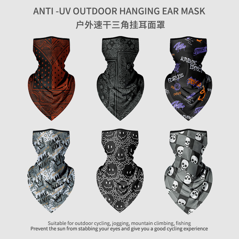 Masker ikat kepala musim panas, perlindungan matahari luar ruangan handuk wajah es sutra naik jilbab penutup leher sepeda segitiga handuk ajaib lintas batas