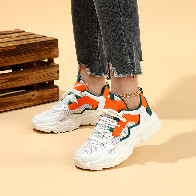 Sepatu platform pasangan, trendi sepatu ayah, Jala, nyaman, bertali, luar ruangan, sepatu lari kasual