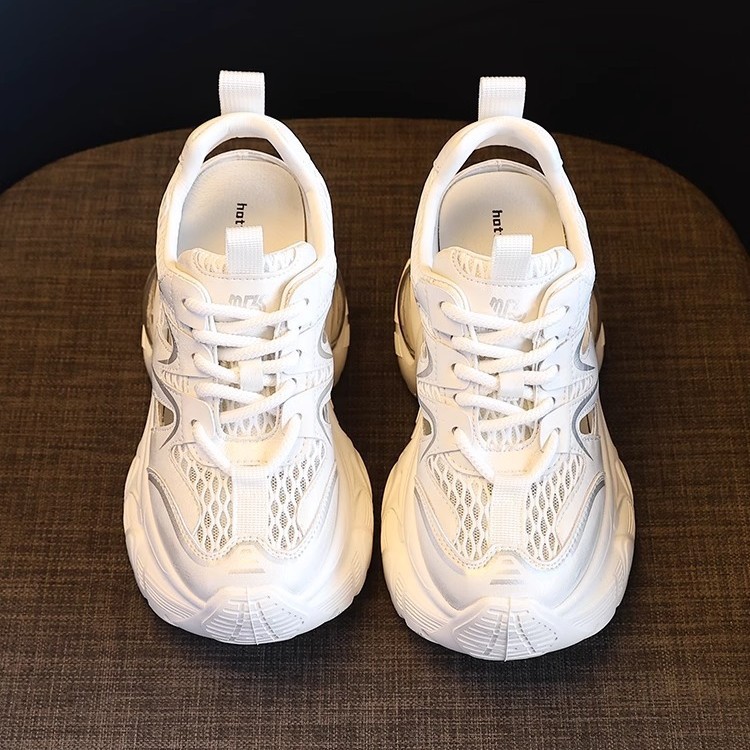 Sepatu Ayah Penambah Tinggi Sol Tebal Berongga Musim Panas Model Baru 2025 Sepatu Olahraga Kasual Mudah Dipadu Padan Sepatu Lari Permukaan Jaring Bernapas